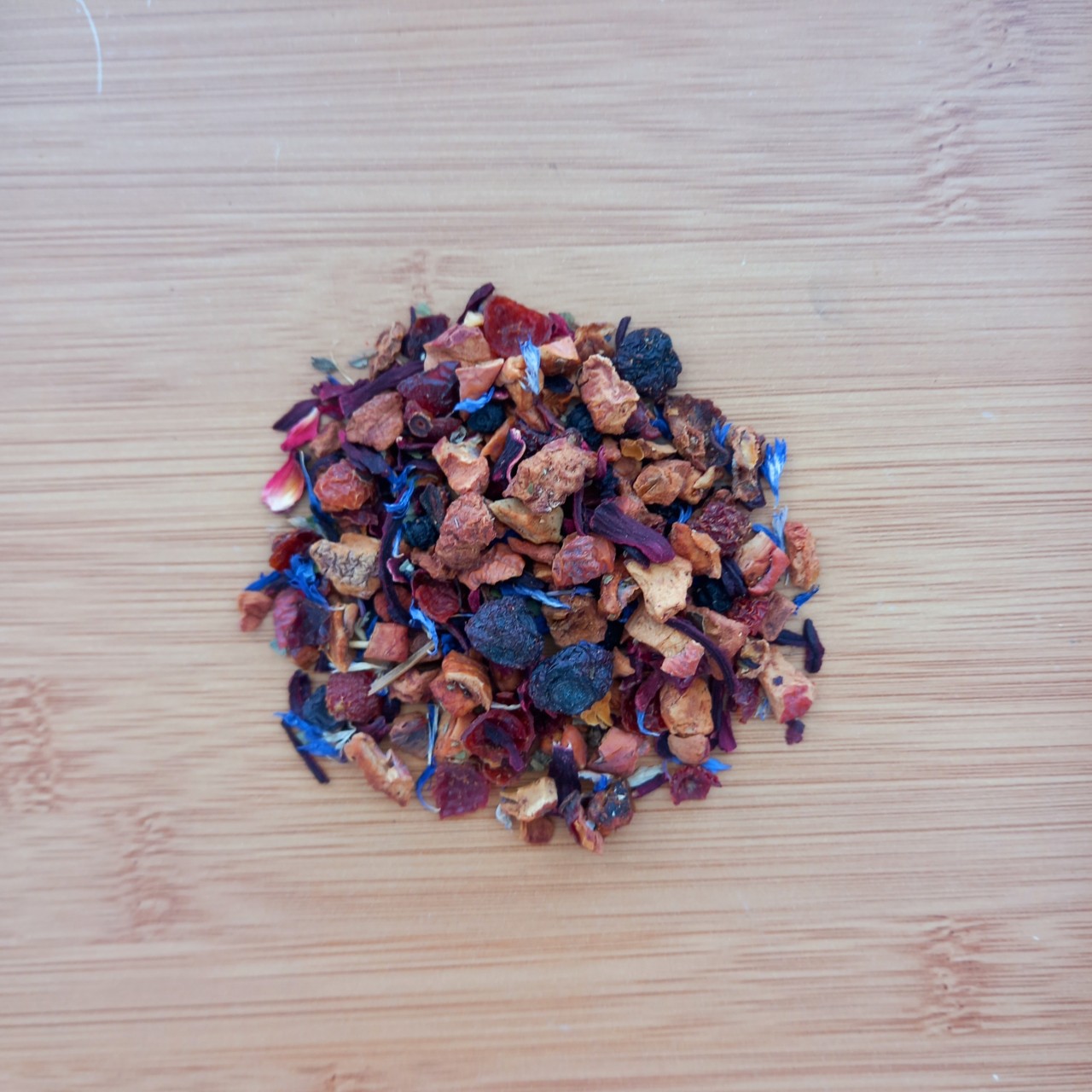 成份: 洛神花瓣、藍莓、蘋果、玫瑰果、矢車菊花瓣